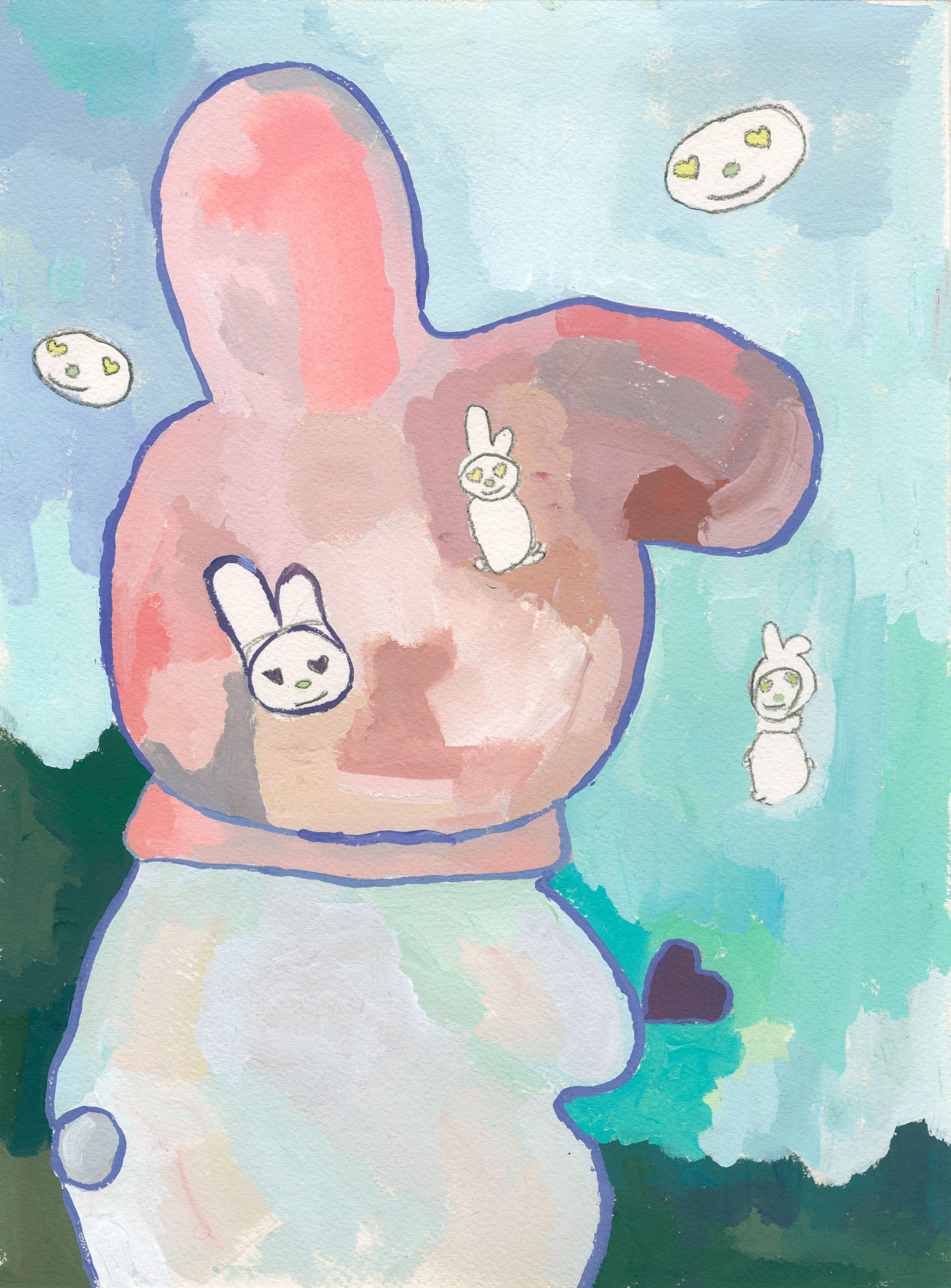How My Melody could reemerge in to the present, and what it would transform into if I brough her to this moment in its original version as a bunny, a bunny that lives in a herd of 14 bunnies, that moves, that jumps, that eats. A bunny dressed in jeans, as both skin and clothing.